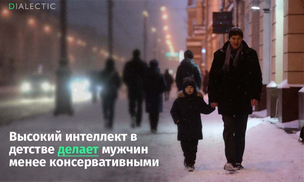 Выяснилось, что мужчины, имеющие высокие интеллектуальные способности в детстве, значительно реже проявляют склонность к традиционным консервативным взглядам в зрелом возрасте. Испытуемые со средними результатами по IQ, напротив, чаще поддерживают консервативные идеи. Это открытие приобрело особую значимость, так как оно имеет ярко выраженную гендерную составляющую: у женщин уровень интеллекта не оказывает заметного влияния на их политические предпочтения. Таким образом, мужчины со средним IQ или ниже чаще выбирают консерватизм, тогда как у женщин данный фактор не влиял на их наклонности к традиционализму.