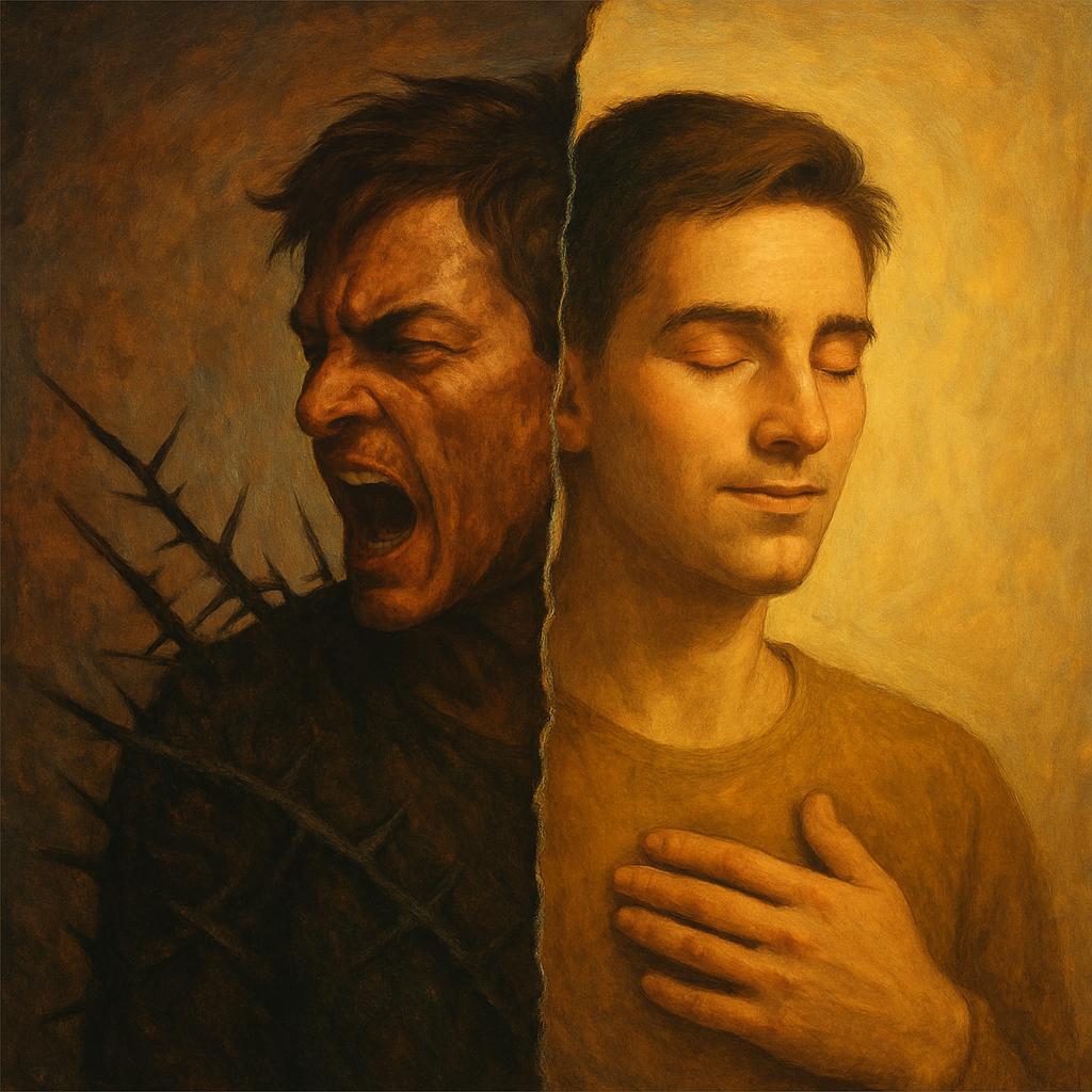 Когда реальность становится слишком тяжёлой, наш ум запускает защитные механизмы, и вот так и возникает озлобленность. Это состояние — не просто злость, а сжатая боль, обида — как крик души, которая уже не может терпеть бессилие и прячет свои раны за колючими защитными механизмами. Внутри звучит послание: «Я больше не позволю тебе меня ранить».