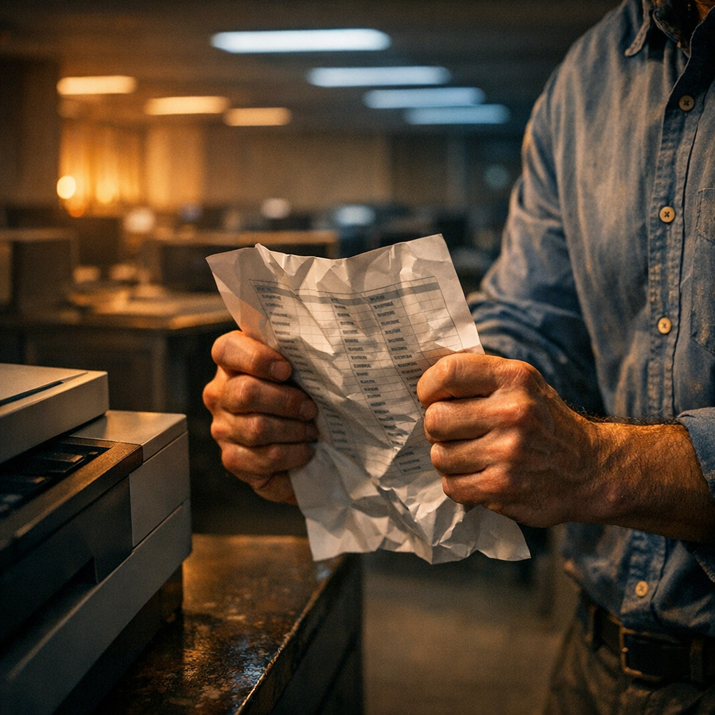 В один из обычных утр, когда никого еще не было в офисе, в серверной раздавался звук работающего принтера. Внезапно обнаруженный документ заставил ведущего инженера Тимура Хасанова почувствовать себя неуютно: на листке бумаги он увидел свой собственный план увольнения.