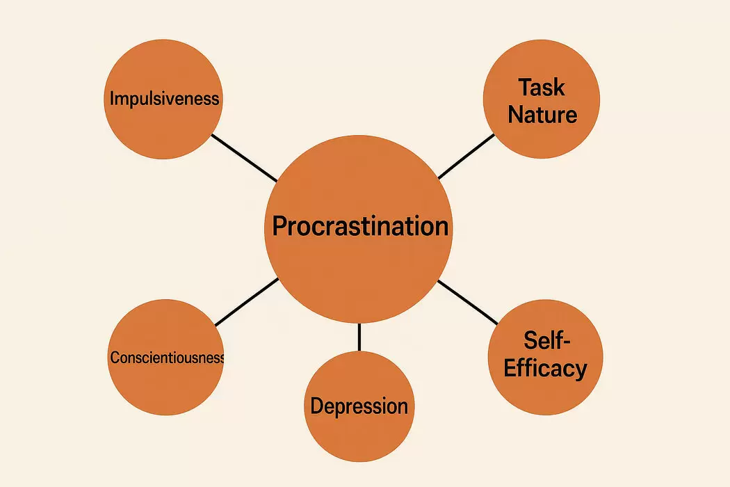 Результаты оказались неожиданными. Наиболее значительное влияние на прокрастинацию оказывали не личные качества студентов, а два внешних фактора: структура задания и личностные характеристики преподавателя. Интересно, что связь между «природой задачи» и «качествами преподавателя» составила коэффициент 0.42 — самый высокий в исследовании. Заметно, что даже импульсивность уступает влиянию четкости заданий и предсказуемости наставника.