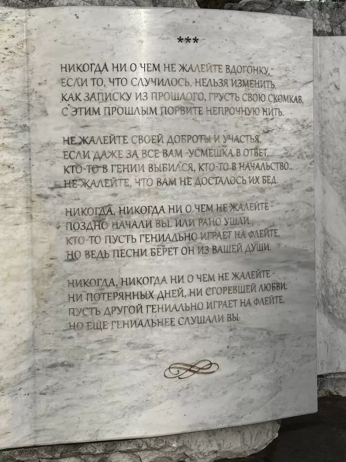Строки стихотворения «никогда ни о чём не жалейте» звучат так, словно предлагают решение проблемы. Однако на практике всё оказывается намного сложнее. Если бы изменить прошлое было так легко, то мы бы не возвращались к нагрузке воспоминаний снова и снова.